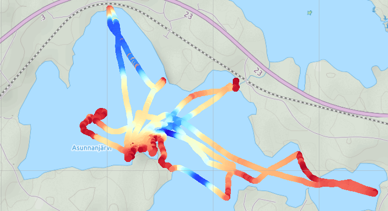 Kotirannasta ja säännöllisten reittien varrelta kertyy kuin huomaamatta suuria määriä syvyyspisteitä, jotka voidaan vielä syvyystietokantaan. Joillakin alueilla pisteaineiston tiheys riittää hyvin yksityiskohtaisen pohjakartan tekemiseen. Muilla alueilla sinun tietosi muodostavat pohjan, jota voi myöhemmin tihentää. Ehkä ensi kerralla tuletkin verkoilta vähän pitempää reittiä ja täytät samalla kartan aukkopaikkoja ja levennät kartoitettua aluetta?